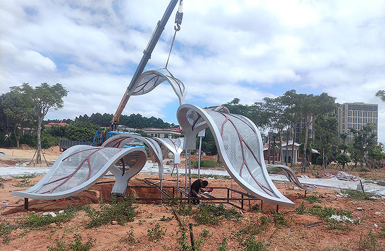 戶外園林不銹鋼雕塑除傳遞美,還需要考慮其耐用性,優(yōu)選304、316以上型材,在造型上也需要避免尖銳棱角以防意外,還需要考慮到其反射,以免對行人車輛造成視覺干擾。