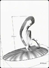 剪影是以目標對象的影子為基礎制作而成,可以簡單理解為二維圖形,但與真正的二維不同的是其具有一定的進深(即厚度),常見于體育運動人物,如把運動標識做成雕塑。