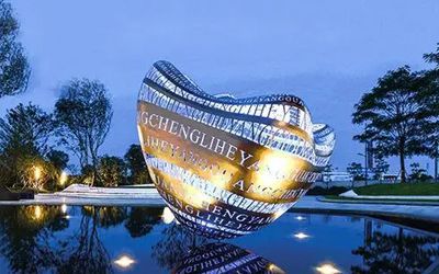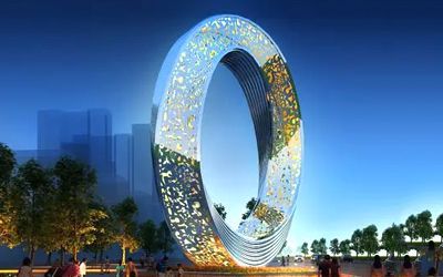 地產(chǎn)類不銹鋼雕塑以大氣磅礴為主要表現(xiàn)形式,一般都是抽象的,傳遞一種視覺上的震撼效果,常見如圓環(huán)、鏤空球、云朵、假山、浪花、水滴等等。