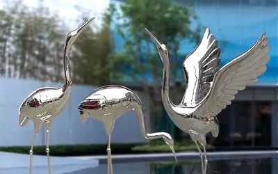 應用于水景之中的不銹鋼雕塑,包括但不限于人物、動物植物、景觀擺件等,常見如貝殼、海螺、海豚、魚、仙鶴、天鵝、青蛙、小鹿、荷花、蓮花、海浪浪花、水滴、假山、鏤空球、圓環(huán)等等。