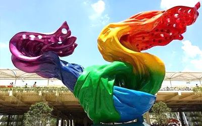 彩色不銹鋼雕塑是結合噴漆制作而成,在雕塑成形之后只需要簡單的打磨,然后刮膩子、噴漆,使得作品能夠表現(xiàn)豐富的色彩。相比鏡面、拉絲等不銹鋼雕塑的制作工藝來說,噴漆不銹鋼雕塑色彩表現(xiàn)豐富、耐用性下降,在長期的日曬雨淋作用下,可能出現(xiàn)起殼、顏色脫落的情況。