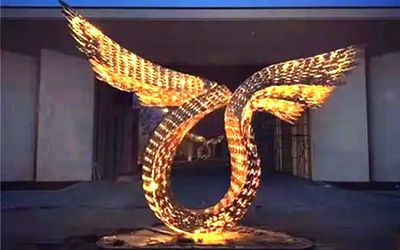 發(fā)光不銹鋼雕塑并不是雕塑本身可以發(fā)光,而是通過內(nèi)置燈源或者纏繞燈帶實現(xiàn)發(fā)光或透光效果,常見做法是在編織網(wǎng)格造型上纏繞燈帶,或者在雕塑內(nèi)部放置燈源,通過隱藏式燈帶或者鉆孔打眼讓內(nèi)部燈光透視而出而形成發(fā)光效果。