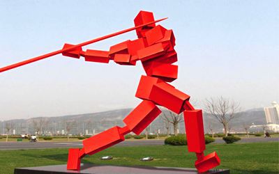以體育運動為主題的不銹鋼景觀雕塑,包括但不限于舉重、乒乓球、體操、保齡球、冰壺、擊劍、射擊、高爾夫、拔河、排球、摔跤、雜技、標槍、棒球、游泳、滑冰、滑旱冰、滑板、滑雪、競走、籃球、網(wǎng)球、羽毛球、自行車、足球、跑步、跨欄、跳水、跳繩、跳遠、跳高等運動及其人物造型。